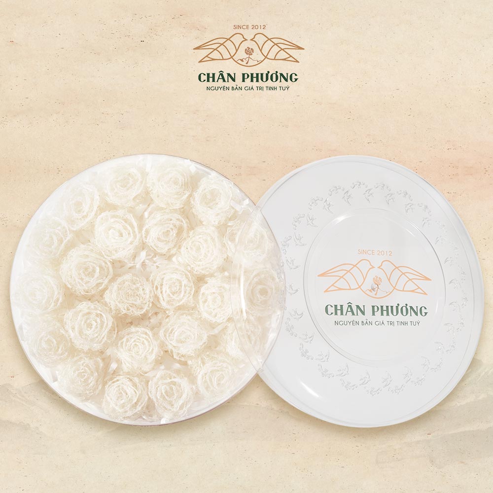 Được chọn lọc kỹ từ những tổ yến đẹp tròn, tổ lớn, loại dày ngon và chế biến theo quy trình khép kín đạt được tiêu chuẩn tổ yến nguyên liệu xuất khẩu, Tổ yến rút lông nguyên chất định lượng Chân Phương là sản phẩm giàu dinh dưỡng, bổ phổi, bổ huyết giúp phục hồi sức khỏe nhanh chóng cho người vừa ốm dậy, sau phẫu thuật.