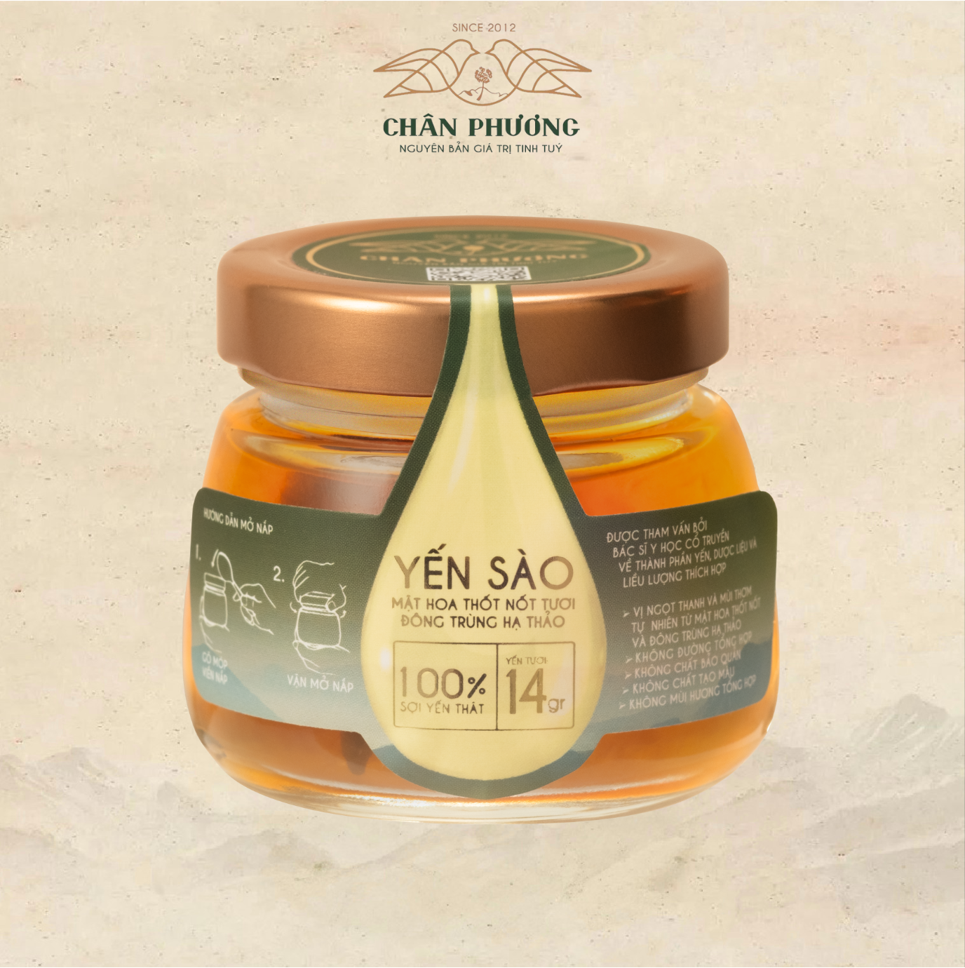 - Yến sào chưng sẵn mật hoa Thốt Nốt tươi Chân Phương cùng Đông trùng hạ thảo bảo toàn dưỡng chất từ yến và vị ngọt thanh thơm mát đặc sắc của Mật hoa Thốt Nốt, Đông trùng hạ thảo tạo cảm giác lưu luyến, khó quên sau khi dùng.